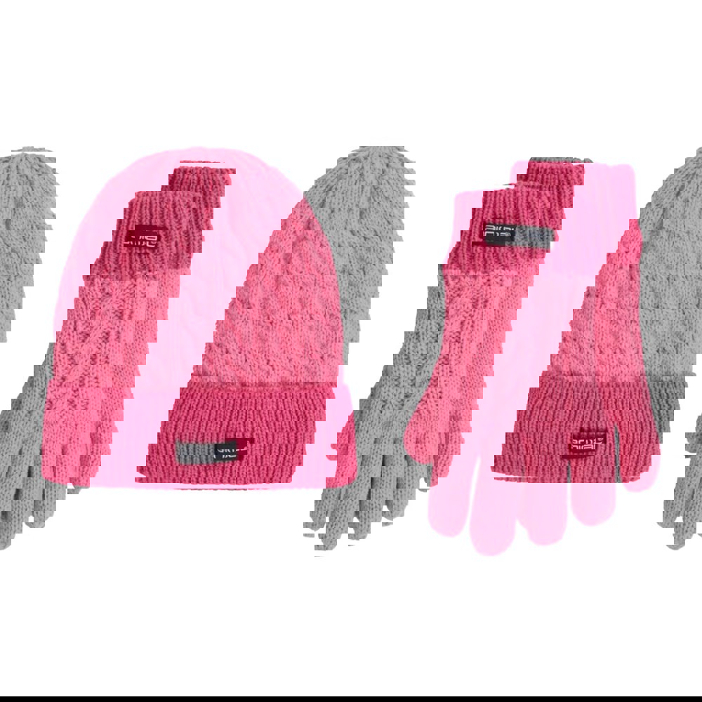 This kids’ hat and gloves set comes in pink with a plain finish and logo detail. Both pieces use a blend of 53% recycled polyester and 47% acrylic, with a lining made from 100% recycled polyester. The lining is faux fur for a soft feel.