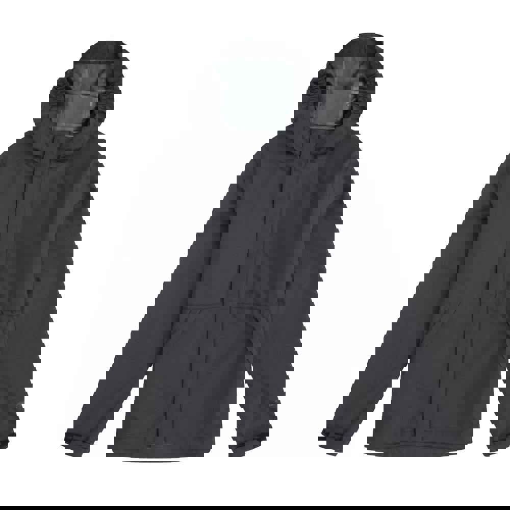 The Animal Kids Pace Waterproof Packaway Jacket in black has a plain finish and a lightweight, PFC free fabric technology. A hooded neckline and long sleeves provide coverage, with a part elasticated hood for a secure fit. The jacket fastens with a full zip and includes taped seams.