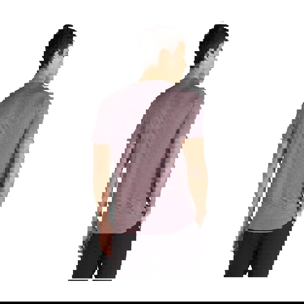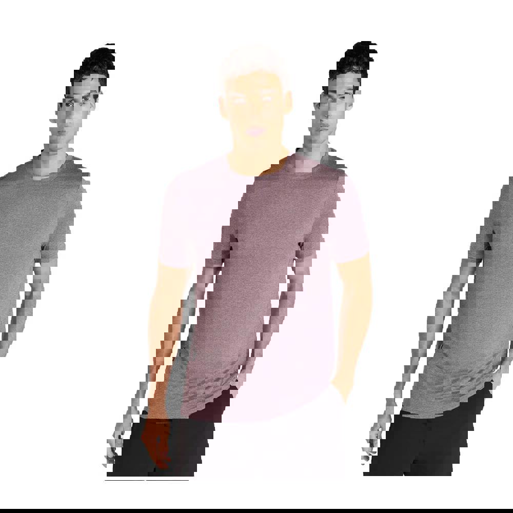 This men’s active short-sleeved T-shirt comes in purple with a plain finish and a crew neckline. Made from 93% polyester and 7% elastane, it is suited to active wear.