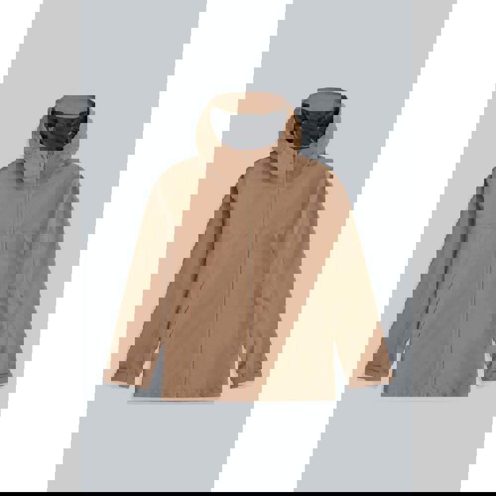 A hooded neckline with an adjustable hood adds practical coverage, while long sleeves are finished with touch fastening cuff tabs. The front zip fastening includes a branded zip pull. Two side pockets provide everyday storage, and an adjustable hem allows the shape to be altered as needed.