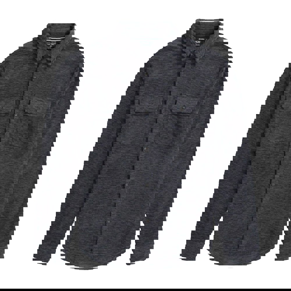 This fleece shirt is made from 100% recycled polyester in a plain navy finish. It has a lightweight, soft handle and a long-sleeved silhouette suited to everyday wear and layering.