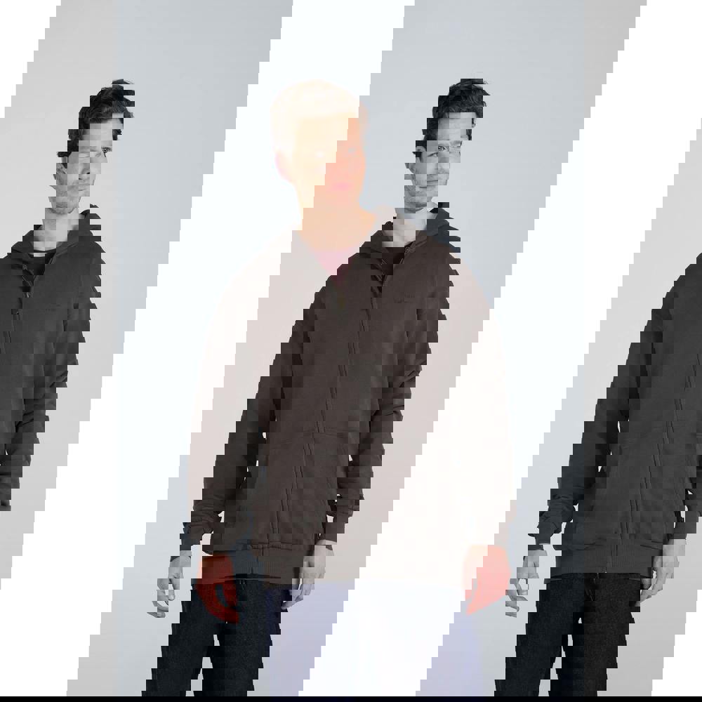 This men’s full zip hoodie is made from cotton with a soft-touch fabric finish. It comes in khaki green with a plain design and icon detail for a clean, understated look.