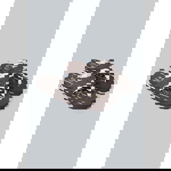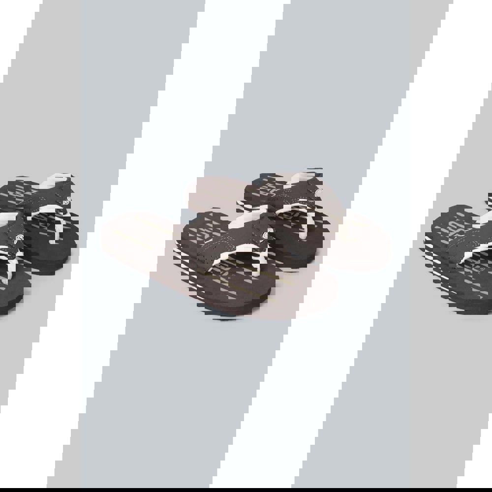 Animal Jekyl recycled flip flops in dark brown with a slip-on design and open toe. A flat heel and lightweight construction keep the profile simple for warm-weather wear. The upper is made from synthetic material, with a lining in recycled polyester and textile. Underfoot, the outsole combines EVA, polyethylene, recycled and synthetic materials.