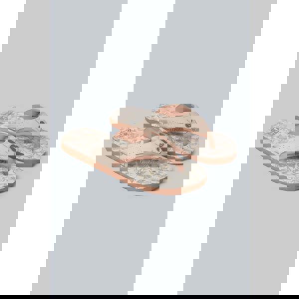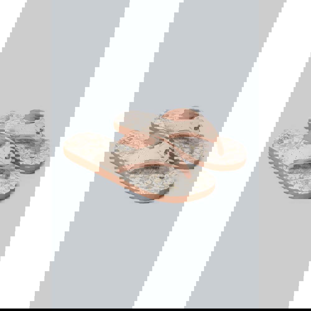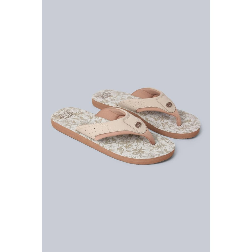 Finished in tan, this flat slip-on style uses a toe post and padded straps for a secure feel. Contrast detailing and a logo complete the design.
