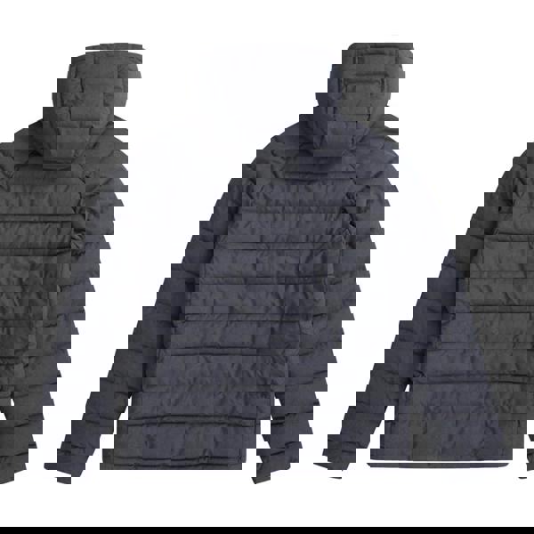 This men’s padded jacket comes in a charcoal marl finish with a logo detail. It has a fused stand up collar and an adjustable hood for added coverage, alongside long sleeves and a full zip fastening. A chin guard is included for comfort at the top of the zip.