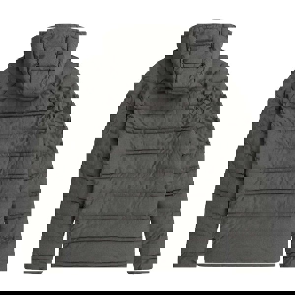 This men’s padded jacket comes in khaki green with a marl finish and a logo detail. It has a hooded neckline with an adjustable hood and a fused stand-up collar for a structured look. Long sleeves and a full zip fastening keep the design clean and practical for everyday wear.