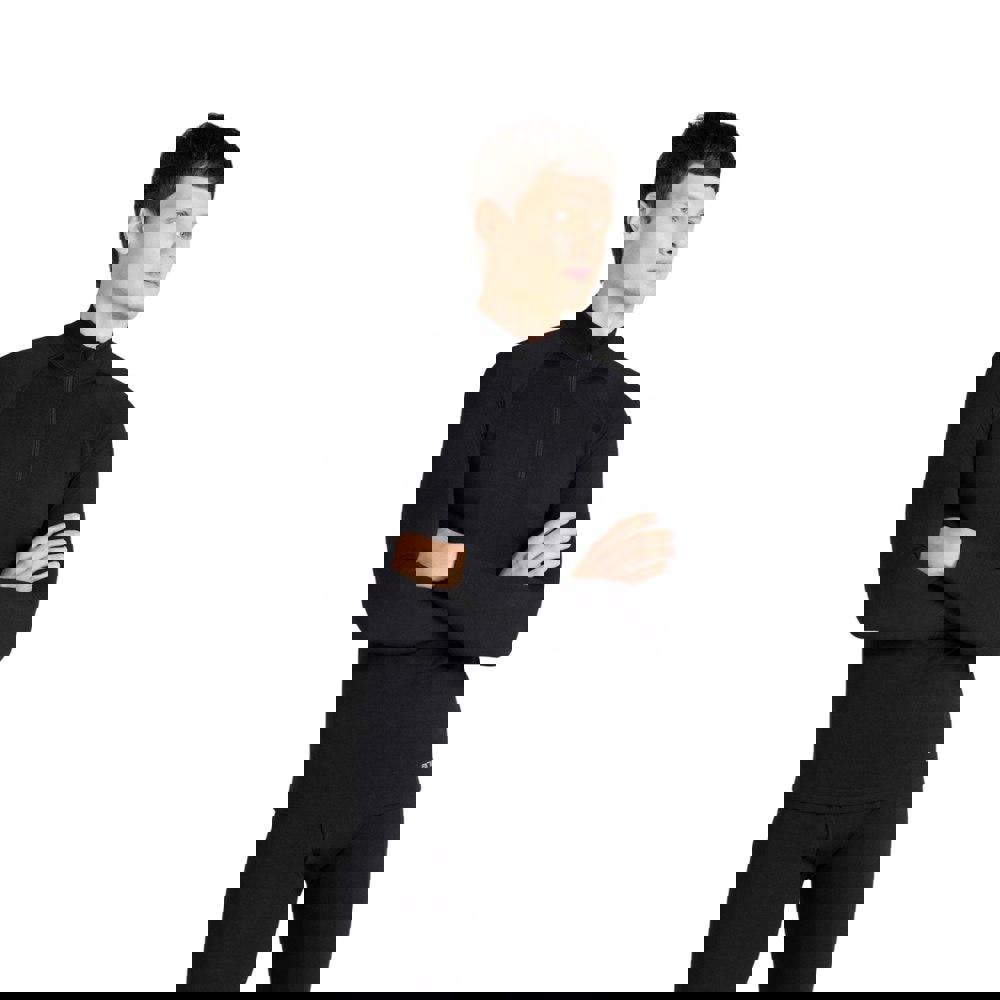 Made from a 50% merino wool and 50% polyester blend, this men’s midlayer offers a soft, lightweight feel with breathable fabric technology. The black finish keeps the look clean and versatile, while the logo design adds a subtle branded detail.
