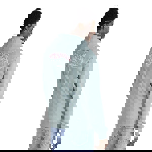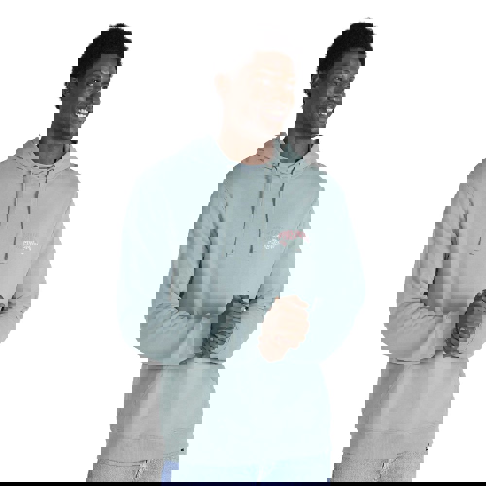 This pale green hoodie is made from 100% organic cotton, with organic cotton trim containing added elastane. A text back print adds a graphic finish, while the hooded neckline includes a sew-on hood with drawcord for adjustable coverage.