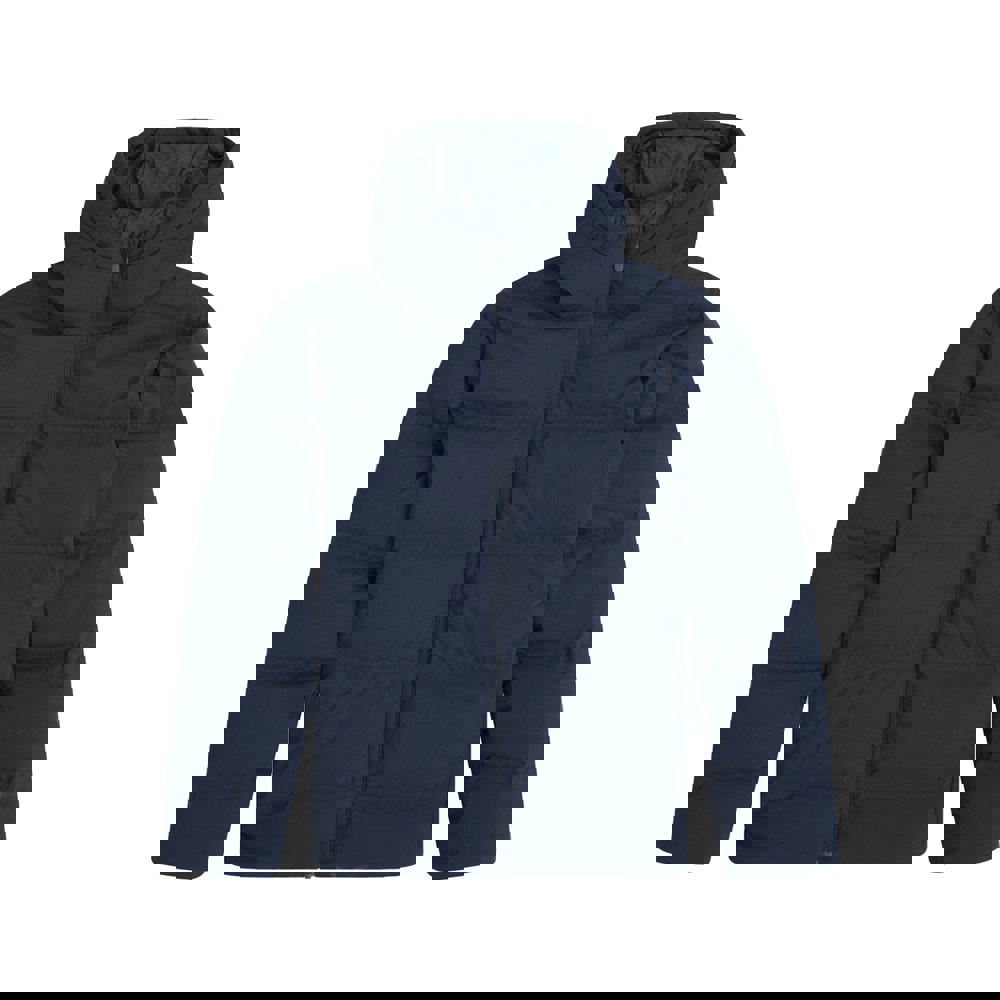 This men’s tech down jacket comes in navy with a hooded neckline and long sleeves. It fastens through the front with a full zip and includes two side pockets for everyday essentials. An adjustable hem allows the shape to be altered as needed.