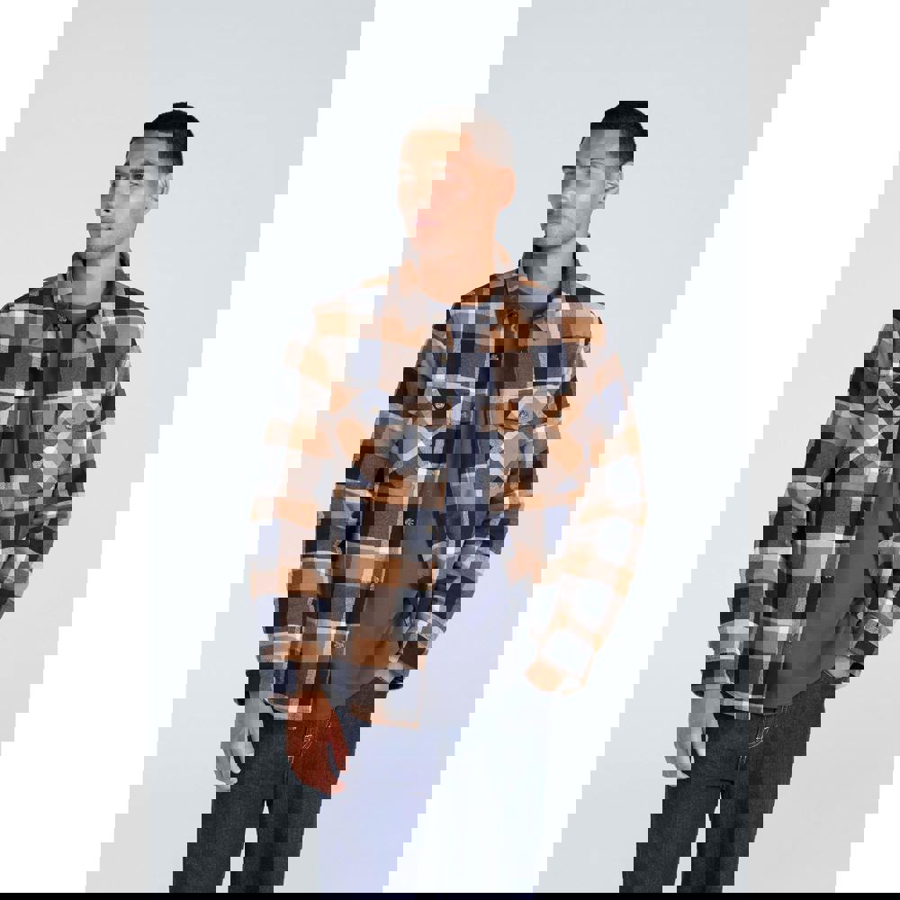 This men’s Tide plaid shirt comes in a mustard colourway and is made from 100% organic cotton. It has a collared neckline and a button-down fastening, with long sleeves finished with double-button cuffs. The plaid design keeps the look classic and easy to wear for everyday outfits.