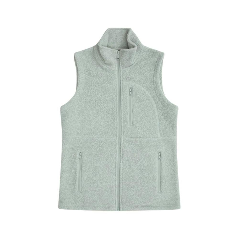 This sleeveless borg gilet is made from 100% polyester and finished in a plain pale green. A high neck and full zip fastening create a clean, practical shape that layers easily over everyday outfits.