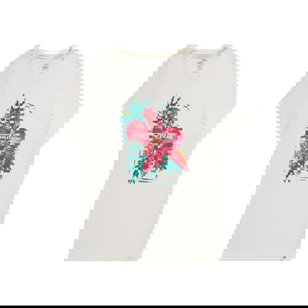 Refresh your everyday wardrobe with this women’s Carina Hibiscus T-shirt in white. Made from 100% organic cotton, it offers a lightweight feel and a breathable finish. The design combines a hibiscus motif with logo detailing for a clean, graphic look.