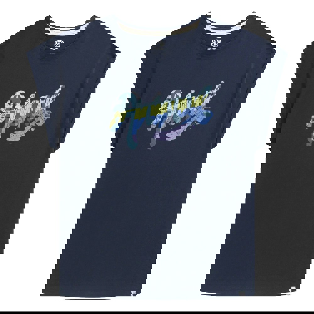This women’s Holly Script T-shirt comes in navy and is made from 100% organic cotton. It has a crew neck and short sleeves, finished with turned-up cuffs for a clean, casual look.