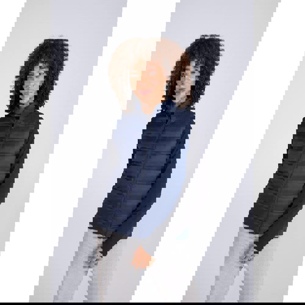 This women’s Light Cosi gilet comes in navy with a plain, quilted finish. Made from 100% polyester, it uses DWR Grade 4, PFC free, water repellent fabric technology. The sleeveless cut and high-neck shape keep the look clean and easy to layer.