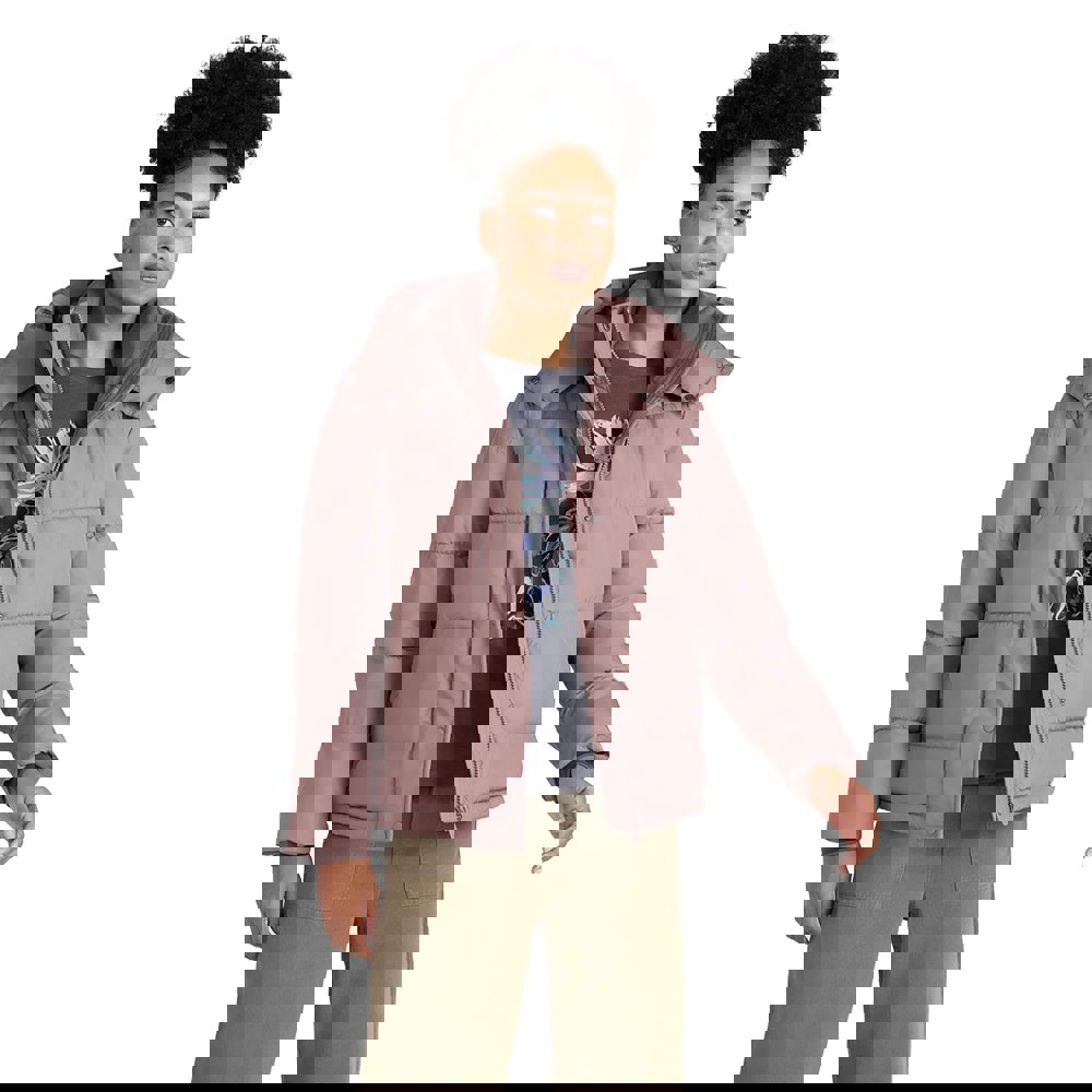 The Maeve puffer jacket is made from 100% polyester with a microfibre filling and padded insulation. Finished in taupe with a plain design, it offers a hooded neckline and long sleeves for added coverage.