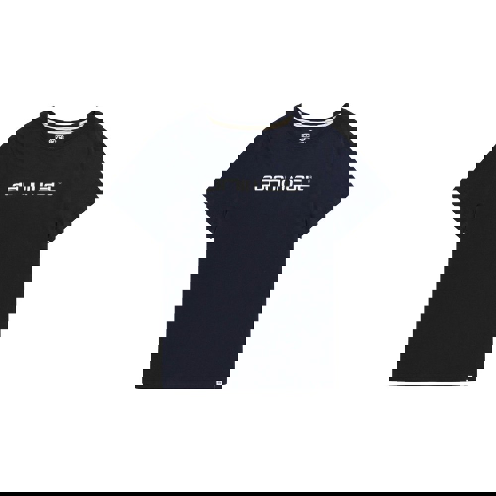 Made from 100% organic cotton, this navy T-shirt offers a clean, casual option for everyday wear. It is cut in a relaxed fit with a classic round neckline and short sleeves for an easy, laid-back silhouette. A logo design adds a simple branded finish, keeping the look understated and versatile.