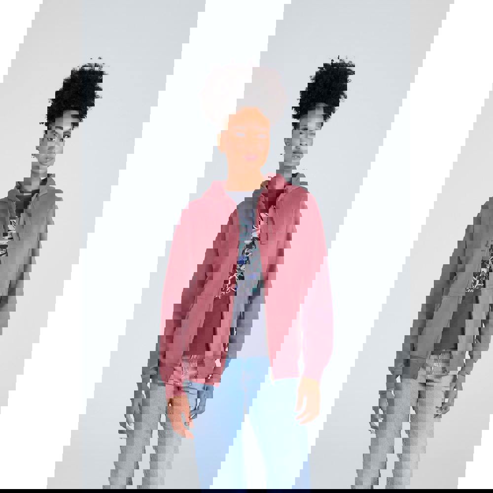 A grown-on hood with an adjustable drawcord adds a classic hoodie profile, while the full zip fastening allows flexible styling. Ribbed cuffs and hem provide a neat outline, and two front pockets complete the everyday layout.
