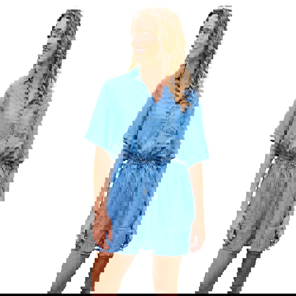 Crafted from 100% lyocell, this plain playsuit offers a clean, understated look for warm-weather dressing. The short-sleeved silhouette is finished with a turn-down collar and a button-down front, keeping the style neat and easy to wear.