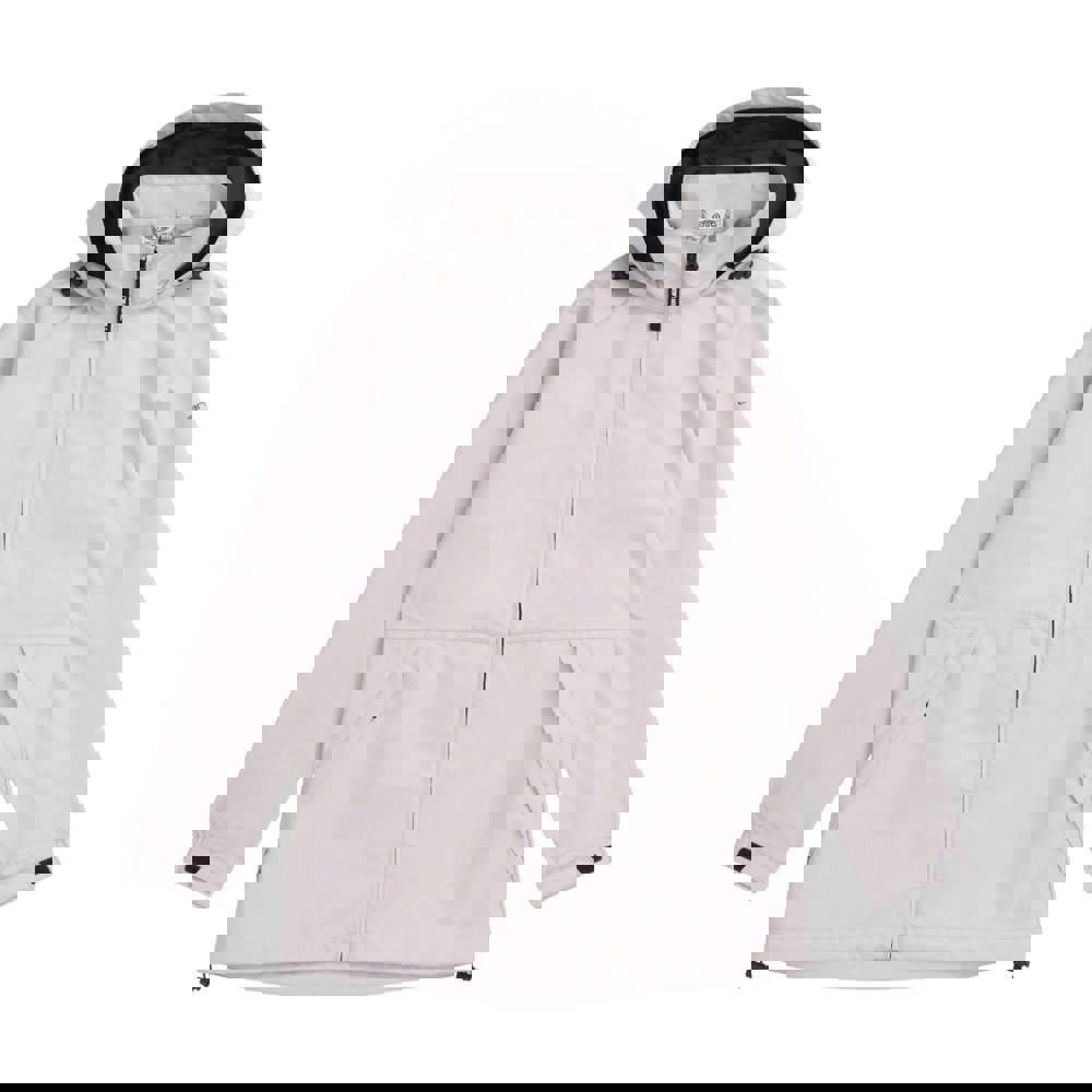 This women’s Pace packable waterproof jacket comes in light beige with a plain finish and logo detailing. The outer is made from 55% recycled polyester and 45% polyester, with a lining in 100% recycled polyester. A hooded neckline is paired with a grown-on hood and toggle adjuster for a secure feel.