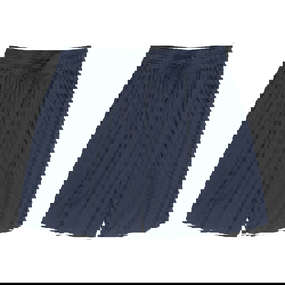 Animal Ria shorts in navy with a plain, ribbed finish. Made from 100% viscose, they have a lightweight feel for everyday wear. An elasticated waist and drawcord fastening allow for an adjustable fit, while a single side pocket adds a practical detail.
