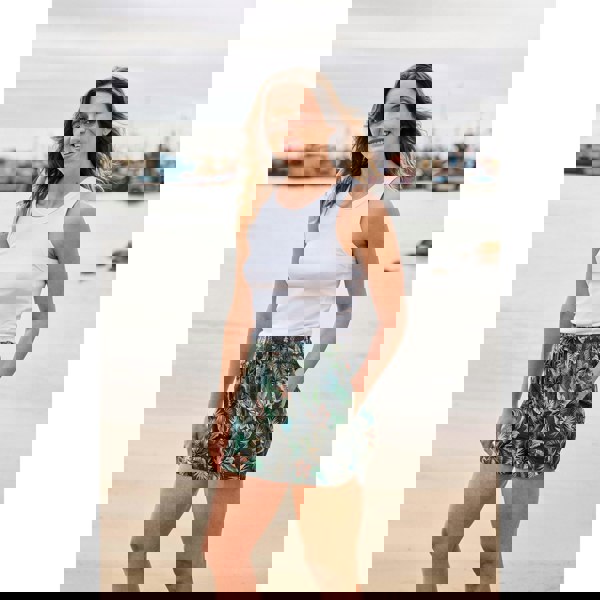 These printed shorts combine a satin-touch, soft-touch finish with a lightweight feel for easy everyday wear. The design includes a Hawaiian-inspired print with logo detailing, finished in a khaki brown shade. An elasticated waist and drawstring fastening keep the fit adjustable, while two side pockets add practical storage.