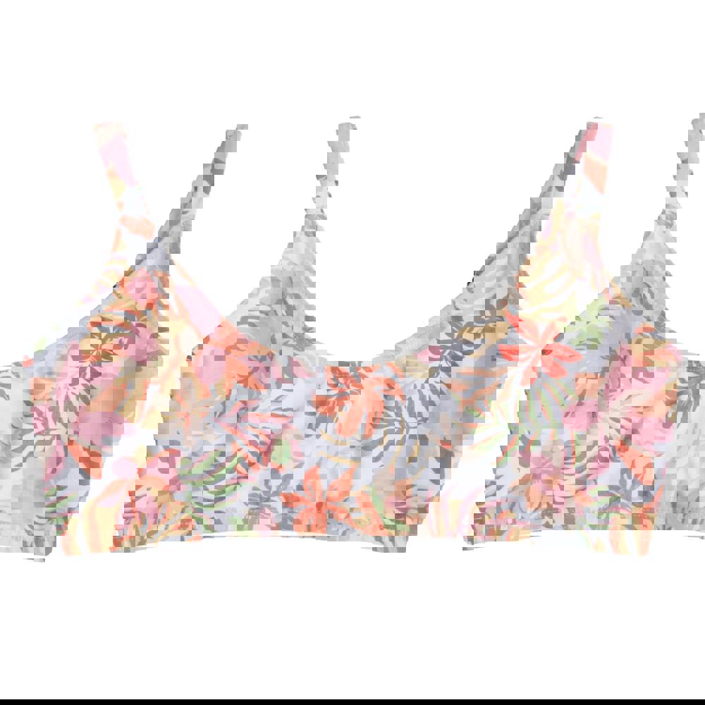 This bralette bikini top comes in an off-white shade with an all-over floral print. Made from stretch material, it has a scoop neckline and adjustable shoulder straps for a custom feel. A hook and eye fastening completes the design, while the lightweight construction supports comfortable wear in and out of the water.