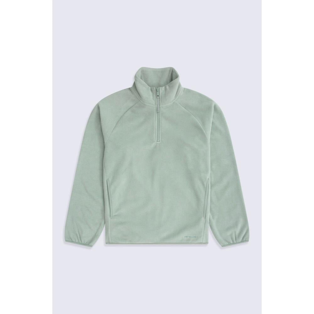This half zip fleece top comes in pale green with a plain finish and logo detail. Made from 100% polyester with a soft-touch fleece feel, it has long sleeves and a standing collar for a clean, structured look. A half zip fastening and pull-over style keep the front simple, while two side pockets add practical storage for everyday wear.