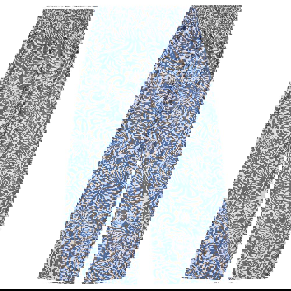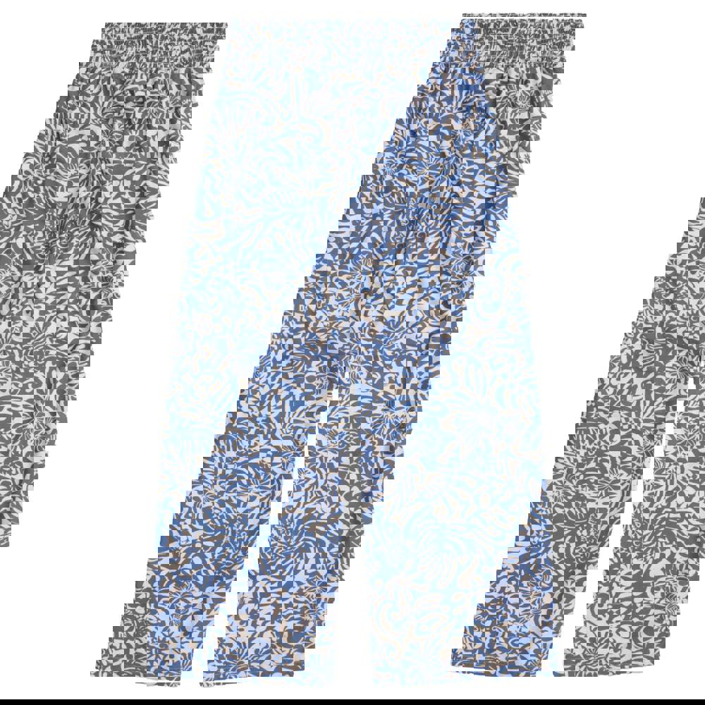 These cropped trousers are made from 100% viscose and finished in light blue with an all-over print. The design combines floral, geometric and logo elements, paired with a wide-leg fit for an easy, relaxed silhouette. An elasticated waist provides a flexible feel, while a side pocket adds a practical detail for everyday wear.
