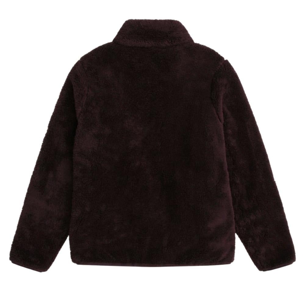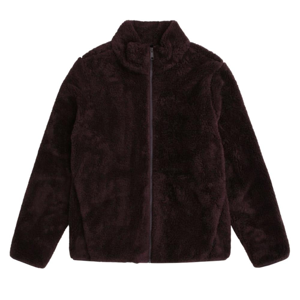 This teddy fleece jacket comes in a plain berry colourway with a soft, warm handle. A high collar and long sleeves create a covered silhouette that works well for everyday layering.