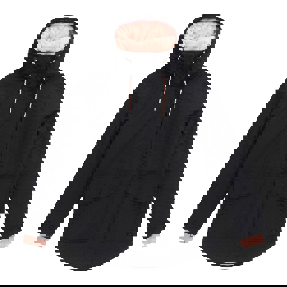 Made from 100% recycled polyester, this women’s ski jacket comes in Jet Black with a logo and back print. The high-neck design includes a grown-on hood with an adjustable drawstring for a secure feel on the slopes.