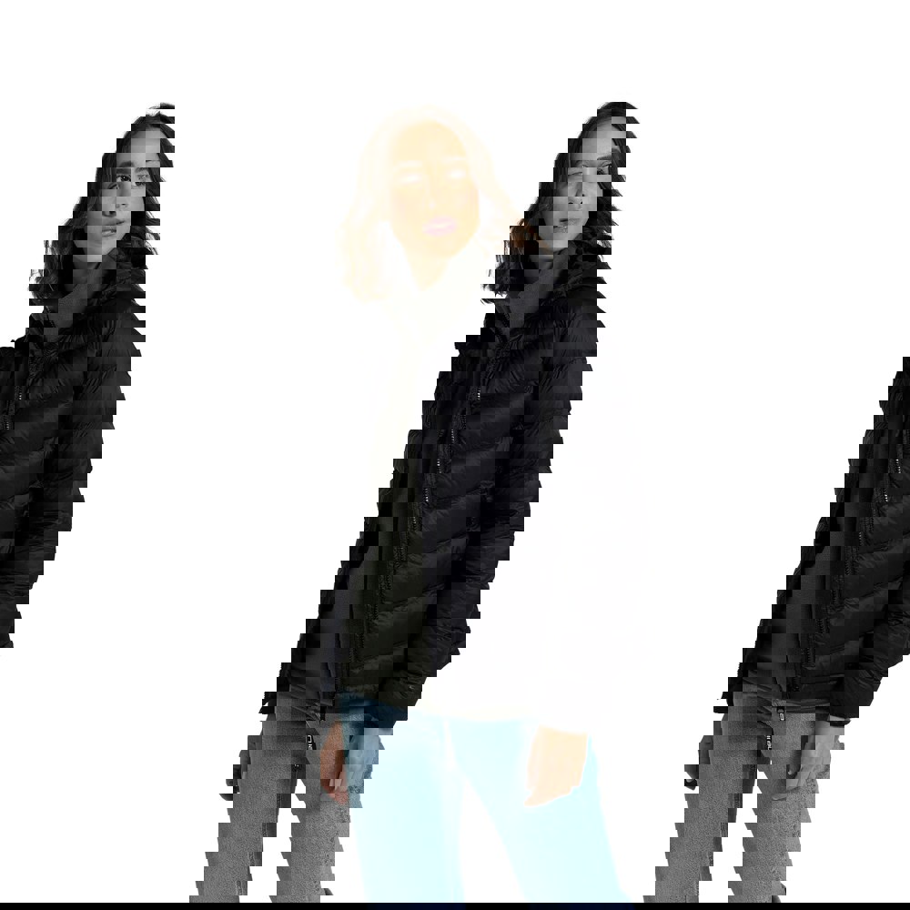 The Light Cloud Cosi padded jacket comes in Jet Black with a plain, quilted finish and a padded construction. It is made with a 100% polyamide outer, a microfibre filling in 100% polyester, and a lining in polyamide and polyester. A hooded neckline is paired with a standing collar, and long sleeves complete the silhouette.