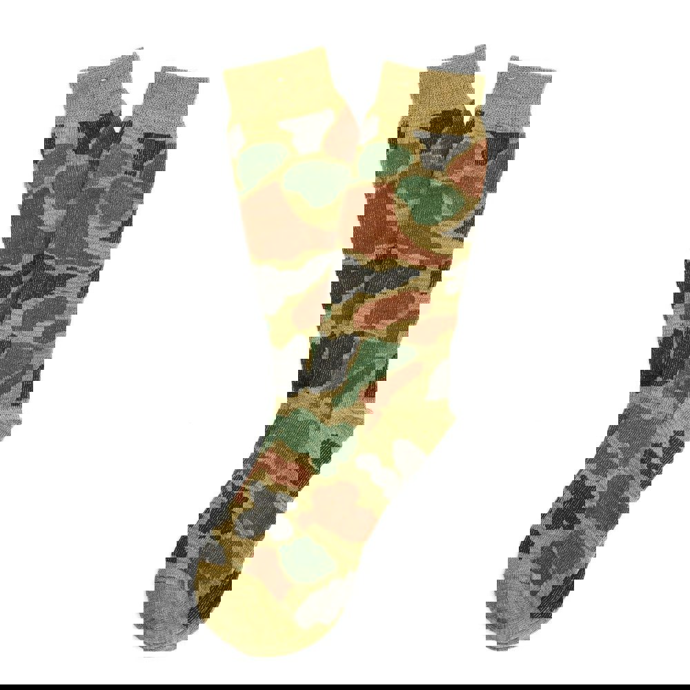 Socks with a vintage inspired camouflage pattern, crafted in soft melange fabric for a modern twist. Designed with a smooth interior and no loose threads, these durable socks provide long-lasting comfort and style.