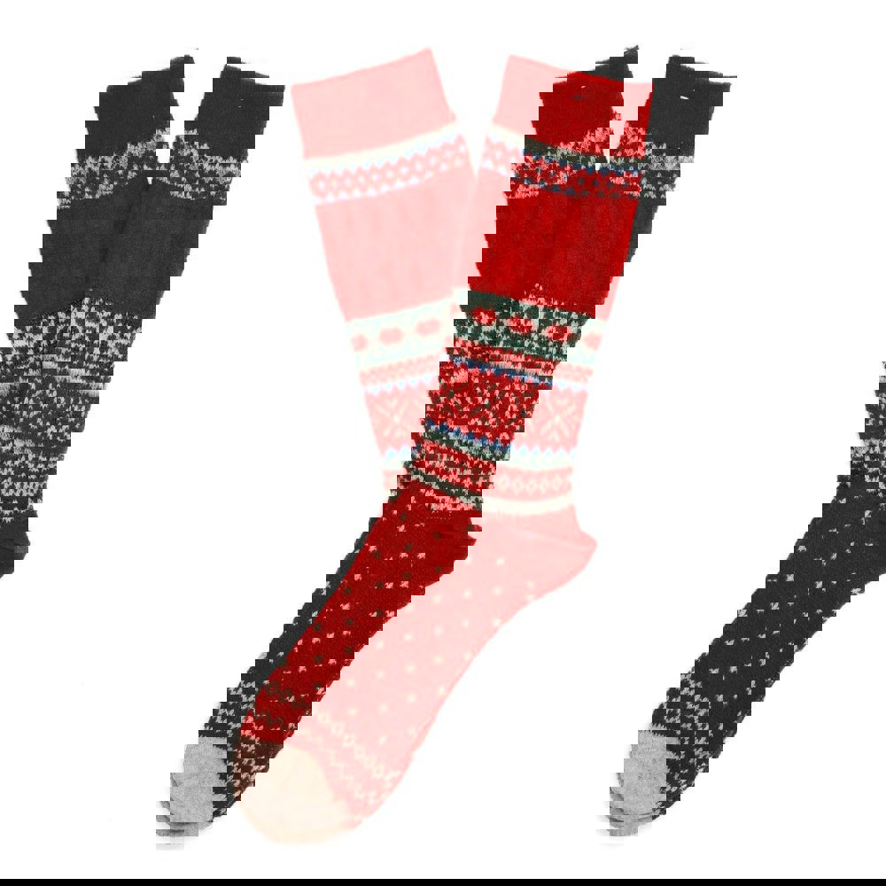 Socks featuring a unique knitted snowflake pattern in a classic Fair Isle design around the ankle. Crafted on a traditional Jacquard loom with a high wool content, these socks provide superior warmth without extra bulk.