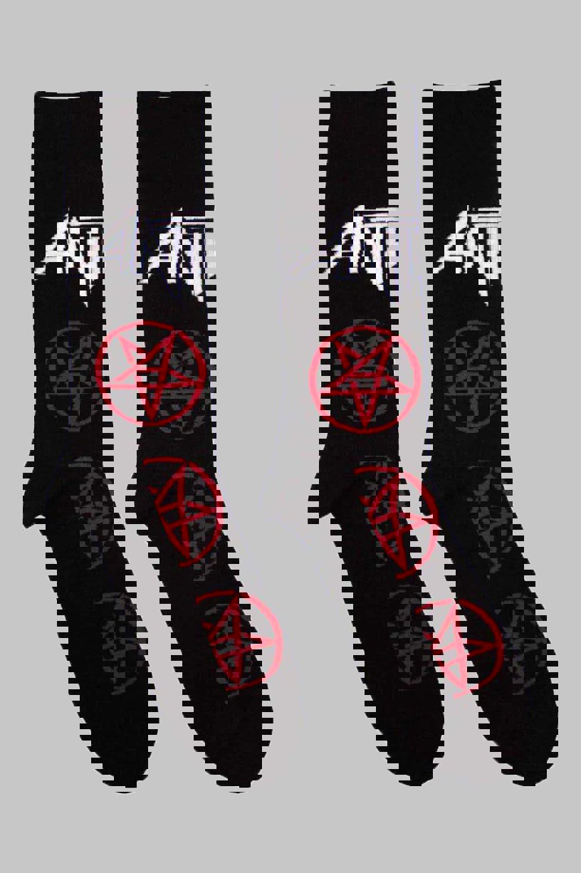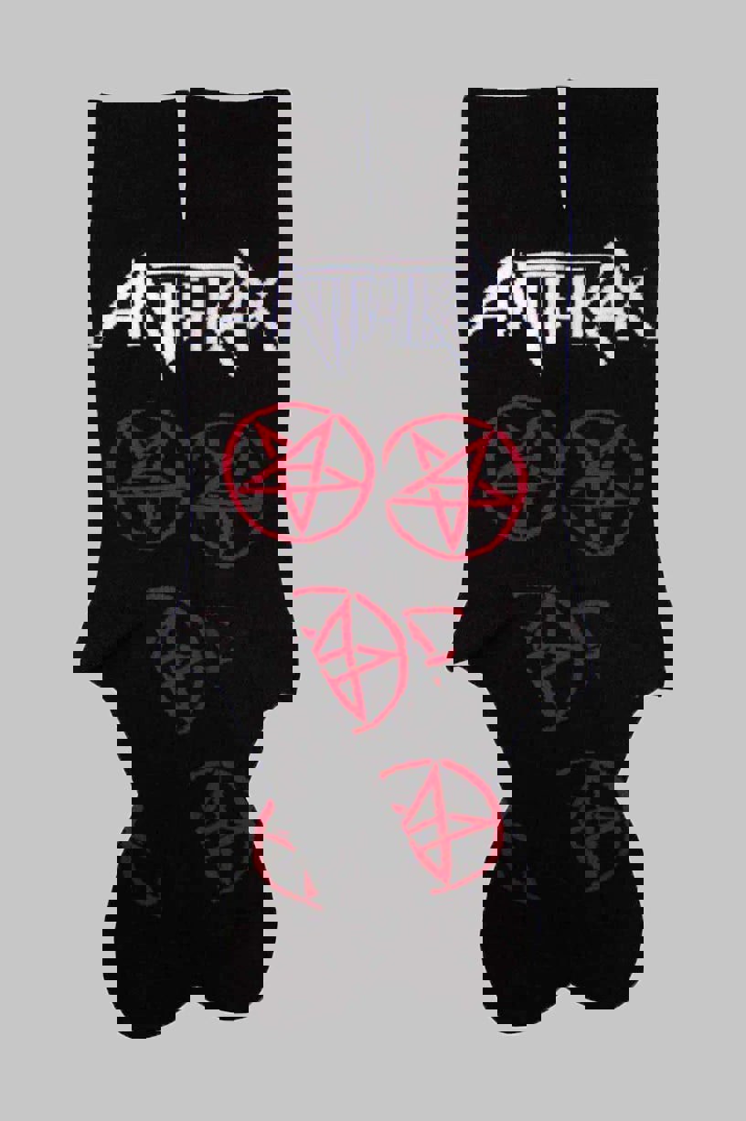 Official licensed Anthrax Unisex Ankle Socks featuring the 'Pentathrax Pattern' design motif. High quality Ankle Socks available in a black colourway. These premium quality, colourful, all-over pattern cotton rich woven socks are guaranteed to stand out in the crowd. Approx. UK Size 7 - 11 EU 40 - 45 US Size 7. 5 - 11. 5