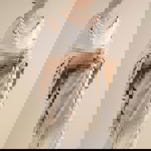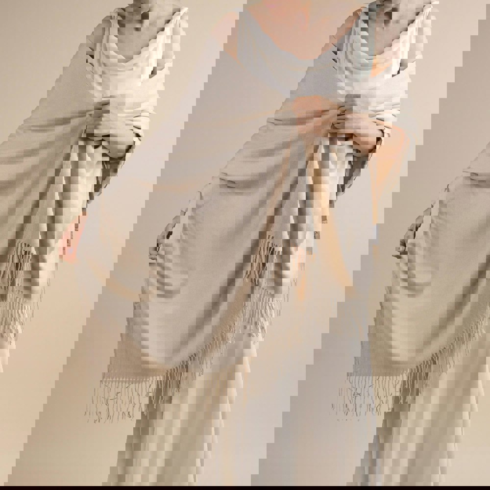 Antonia York Beige Pashmina | Drew Super Soft Large Special Occasion Wrap with Tassels