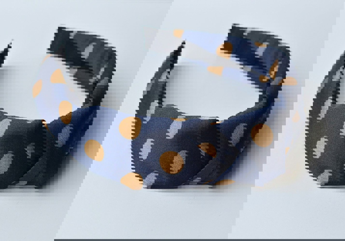 Antonia York Twisted Knot Headband Navy Blue with Gold Polka Dot Silky Fabric Rigid Hair band