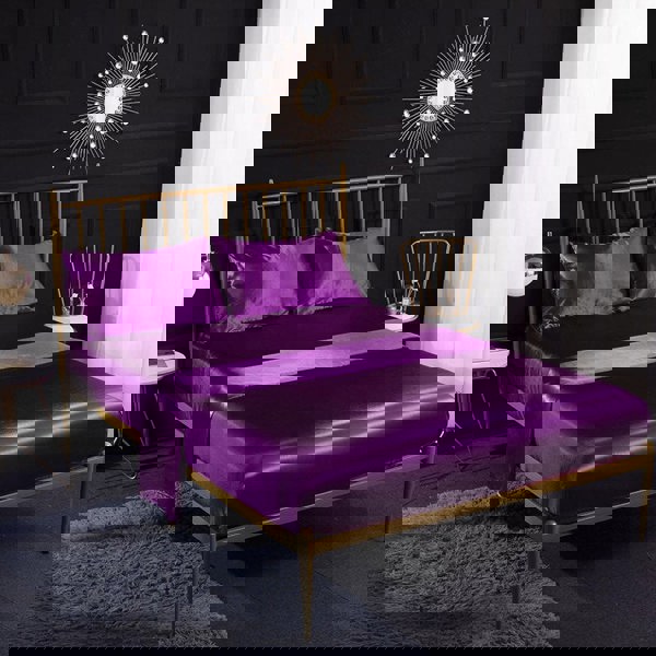 Anycozy Fitted Sheet Full Size Purple Luxury Silky Beddings Set with Pillow Cases