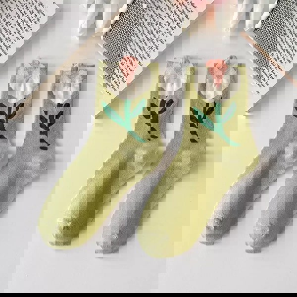 Anyfootwear 5 Pairs One Size 5-8 Green Tulips Style Cartoon Flower With Candy Color Kawaii Mid Tube Breathable Casual Short Socks For Women