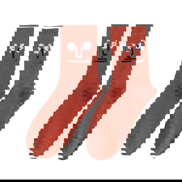 Anyfootwear 5 Pairs One Size 5-9 Red Unisex Wacky Expressions Style Trend Surprise Socks With Candy Colors Funny, Kawaii, Happy Girls Socks For Women