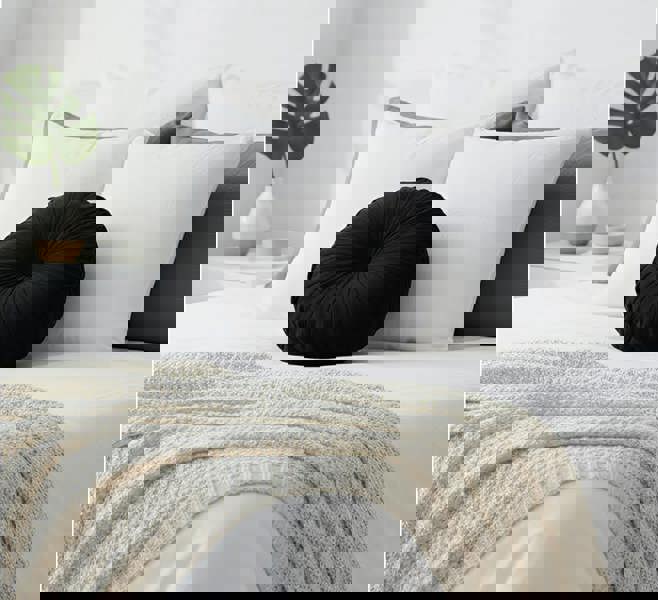 The Anygleam Anyhouz round pleated velvet pillow is a soft cushion designed to add comfort and a decorative finish to your home. Ideal for styling on sofas, beds or chairs, it offers an easy way to refresh a room while supporting everyday sitting and lounging.
