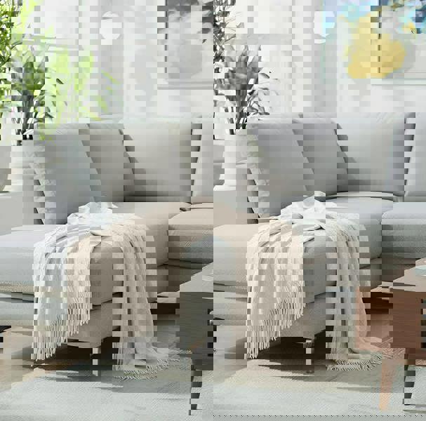 Made from acrylic fibres, this white faux cashmere-style blanket offers a soft feel and is machine washable for straightforward care. Supplied as a single blanket, it can also be used as a sofa cover.
