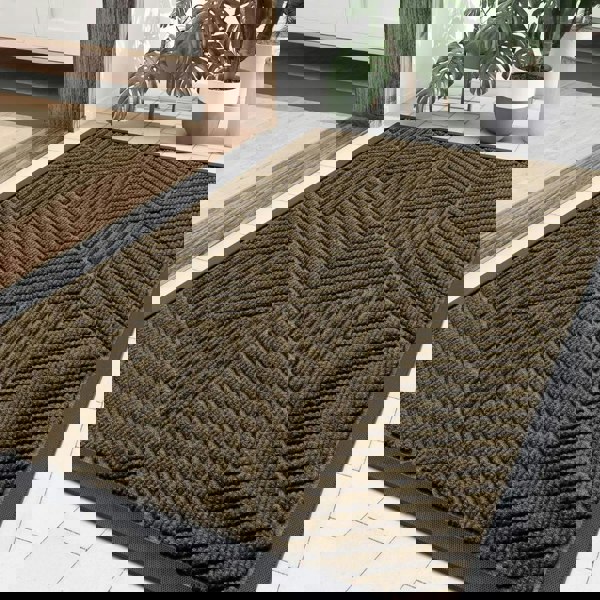 Anyhouz Anymat Doormat Brown Geometric Rubber Non Slip Dirt Trap Absorbent Mat