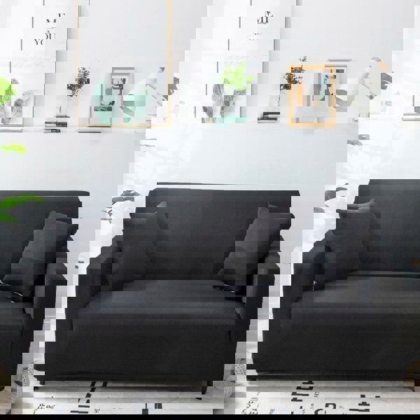 Anyhouz Anyseat 1 Seater Sofa Cover Plain Black Style and Protection For Living Room Sofa Chair Elastic Stretchable Slipcover