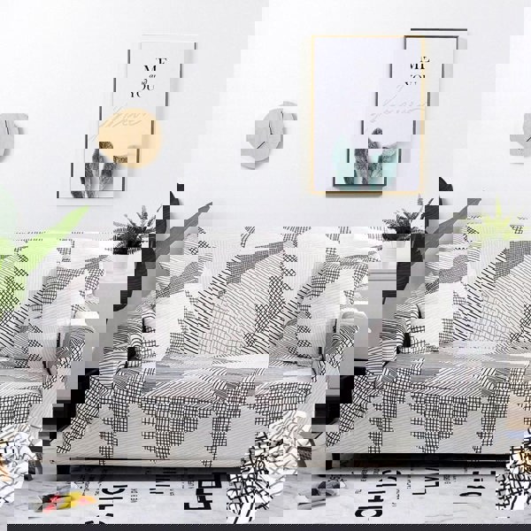 Anyhouz Anyseat 1 Seater Sofa Cover White Geometric Style and Protection For Living Room Sofa Chair Elastic Stretchable Slipcover
