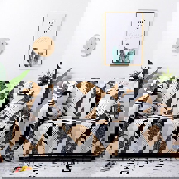 Anyhouz Anyseat 3 Seater Sofa Cover Beige Geometric Style and Protection For Living Room Sofa Chair Elastic Stretchable Slipcover