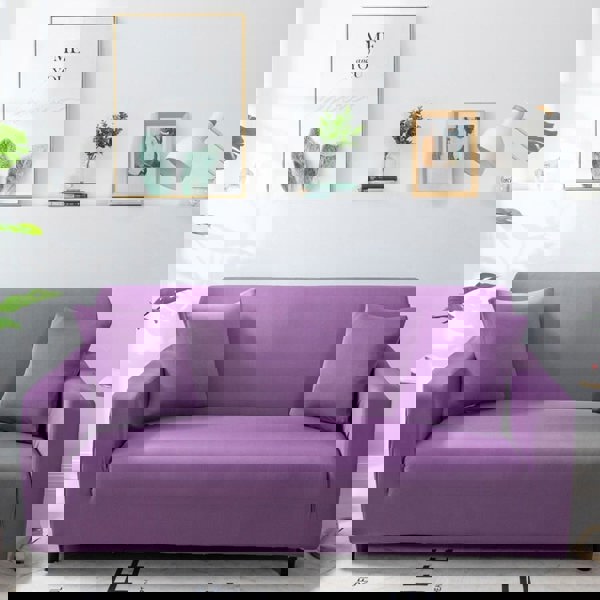 Anyhouz Anyseat 3 Seater Sofa Cover Plain Purple Style and Protection For Living Room Sofa Chair Elastic Stretchable Slipcover