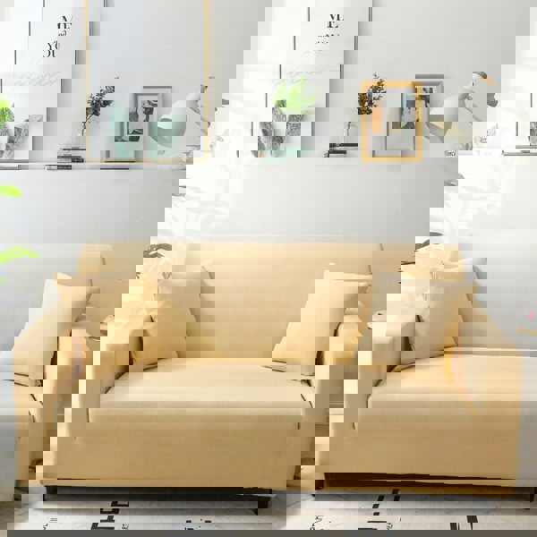 Anyhouz Anyseat 4 Seater Sofa Cover Plain Beige Style and Protection For Living Room Sofa Chair Elastic Stretchable Slipcover