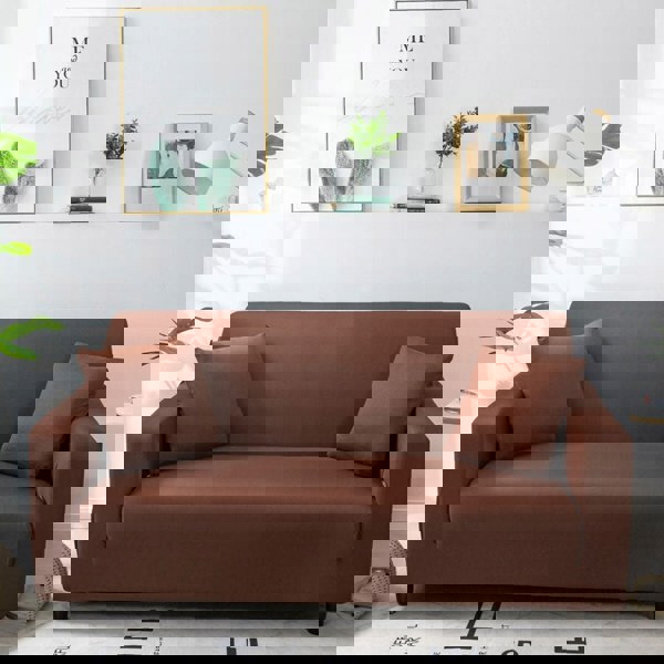 Anyhouz Anyseat 4 Seater Sofa Cover Plain Light Coffee Style and Protection For Living Room Sofa Chair Elastic Stretchable Slipcover