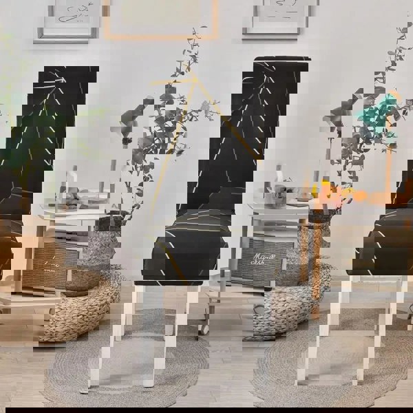 Anyhouz Anyseat Chair Cover Black Gray Geometric Line Print Elastic Slipcover Dining Decor