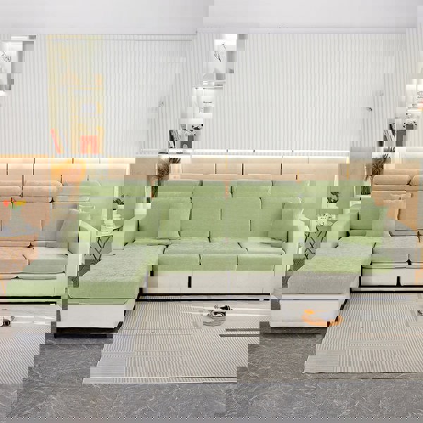 Anyhouz Anyseat Sofa Cover Mint Green L-Shape Polyester Chenille Thick Stretchable Cushion For Living Room Enlarge Size Medium